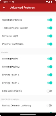 Fleksibilitet er kernen i denne oplevelse. Selvom appen intelligent foreslår den rette tjeneste, kan du nemt overstyre dette ved hjælp af det diskrete ur-ikon, så du kan vælge lige præcis den morgen-, middags-, aften- eller natbøn, du ønsker, uafhængigt af klokkeslættet. For dem, der søger en endnu mere personlig tilgang, åbner menuen "avancerede funktioner" op for dybdegående tilpasningsmuligheder. Her kan du tænde og slukke for forskellige elementer i liturgien for daglig bøn og vælge mellem to forskellige versioner af Fadervor, så din andagt afspejler dine præferencer fuldt ud.