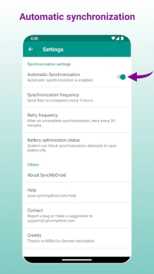 SyncMyDroid Pros raffinerede synkroniseringsmekanisme sikrer, at dine filer altid er opdaterede og tilgængelige. Når du foretager ændringer på din Android-enhed, afspejles disse automatisk på din computer. Skulle du slette en fil fra din Android, forbliver kopien intakt på din computer, hvilket giver dig en ekstra sikkerhed. Og hvis du redigerer en kopieret fil på din computer, bevares dine ændringer, mens en sikkerhedskopi af den originale fil gemmes ved siden af den modificerede version. Dette giver dig fuld kontrol og ro i sindet, velvidende at dine data håndteres med omhu og fortrolighed – uden at SyncMyDroid indsamler personlige oplysninger.