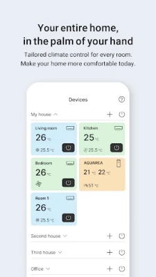 Forestil dig et hjem eller kontor, hvor komfort altid er inden for rækkevidde. Med denne intelligente løsning får du fuld kontrol over dit indeklima, uanset hvor du befinder dig. Styr ubesværet dine klimaanlæg, luft-til-vand varmepumper og ventilatorer direkte fra din enhed. Oplev friheden ved at justere temperatur, vælge den perfekte driftstilstand – hvad enten det er køling, varme eller ventilation – og endda finjustere ventilatorhastighed og luftretning, alt sammen med få tryk. Det handler om at skabe det ideelle miljø, præcis når du har brug for det.
