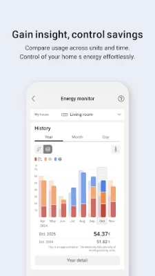 Hold dig informeret og optimer dit energiforbrug med intuitive overvågningsværktøjer. Få et klart overblik over både inde- og udetemperaturer samt detaljerede grafer over dit energiforbrug, hvilket gør det nemt at identificere mønstre og foretage justeringer for øget effektivitet. Med den indbyggede ugentlige timer kan du skræddersy din klimaautomatik med op til seks daglige handlinger, sikrende optimal komfort og energibesparelser, selv når du er væk. Skulle der opstå et uventet problem, modtager du prompte notifikationer med fejlkoder, så du hurtigt kan adressere situationen. Bemærk venligst, at funktionernes tilgængelighed kan variere afhængigt af den specifikke model af din enhed og din geografiske region.