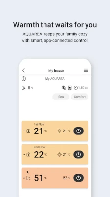 Styr og overvåg dine Panasonic HVAC-enheder nemt med Panasonic Comfort Cloud. Få fuld kontrol over dit indeklima, uanset hvor du er, direkte fra din smartphone. Oplev optimal komfort lige ved hånden.