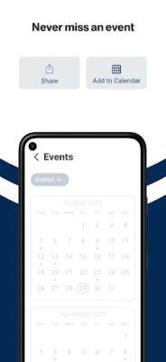 Er du træt af at misse vigtige begivenheder og nyheder fra skoledistriktet? Med denne intuitive løsning får du en samlet oversigt over alle kommende arrangementer. Uanset om det er skolefester, sportsbegivenheder eller forældremøder, er alle detaljer lige ved hånden. Tilføj nemt arrangementer til din personlige kalender med et enkelt tryk, og del dem uden besvær med venner og familie, så I alle kan deltage og nyde fællesskabet sammen. Denne app sikrer, at du altid er forbundet med distriktets puls og undgår at gå glip af noget afgørende.
