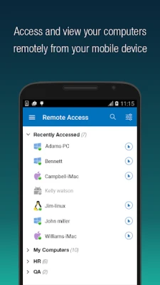 RemotePC strømliner ikke kun individuel produktivitet, men revolutionerer også teamarbejde. Samarbejd problemfrit med kolleger og venner ved at tilgå deres fjerncomputere for at arbejde på præsentationer, redigere dokumenter eller gennemse mediefiler i realtid. Appen tilbyder robust platformskompatibilitet, der forbinder dig fra dine Android-enheder til Windows- og Mac-maskiner, ligesom den lader dig styre Android-enheder og Chromebooks fra både computere og andre Android-enheder. Med forbedret ydeevne og minimal latenstid sikres en problemfri og responsiv oplevelse, selv for gamere, der kræver den hurtigste fjernstreaming.