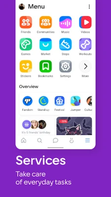 Dyk ned i et af verdens mest omfangsrige sociale økosystemer, hvor mulighederne for interaktion er uendelige. VK giver dig redskaberne til at udvide din vennekreds og engagere dig i spændende onlinefællesskaber. Her kan du også fordybe dig i et univers af underholdning: lyt til dine yndlingsmelodier og opdag nye kunstnere via personlige anbefalinger, skab og se fascinerende korte, vertikale videoer med VK Clips, følg med i live-streams, del dine billeder og hold dig opdateret med interessante nyheder gennem tematiske feeds. For den eventyrlystne byder VK også på sjove spiloplevelser direkte i appen.